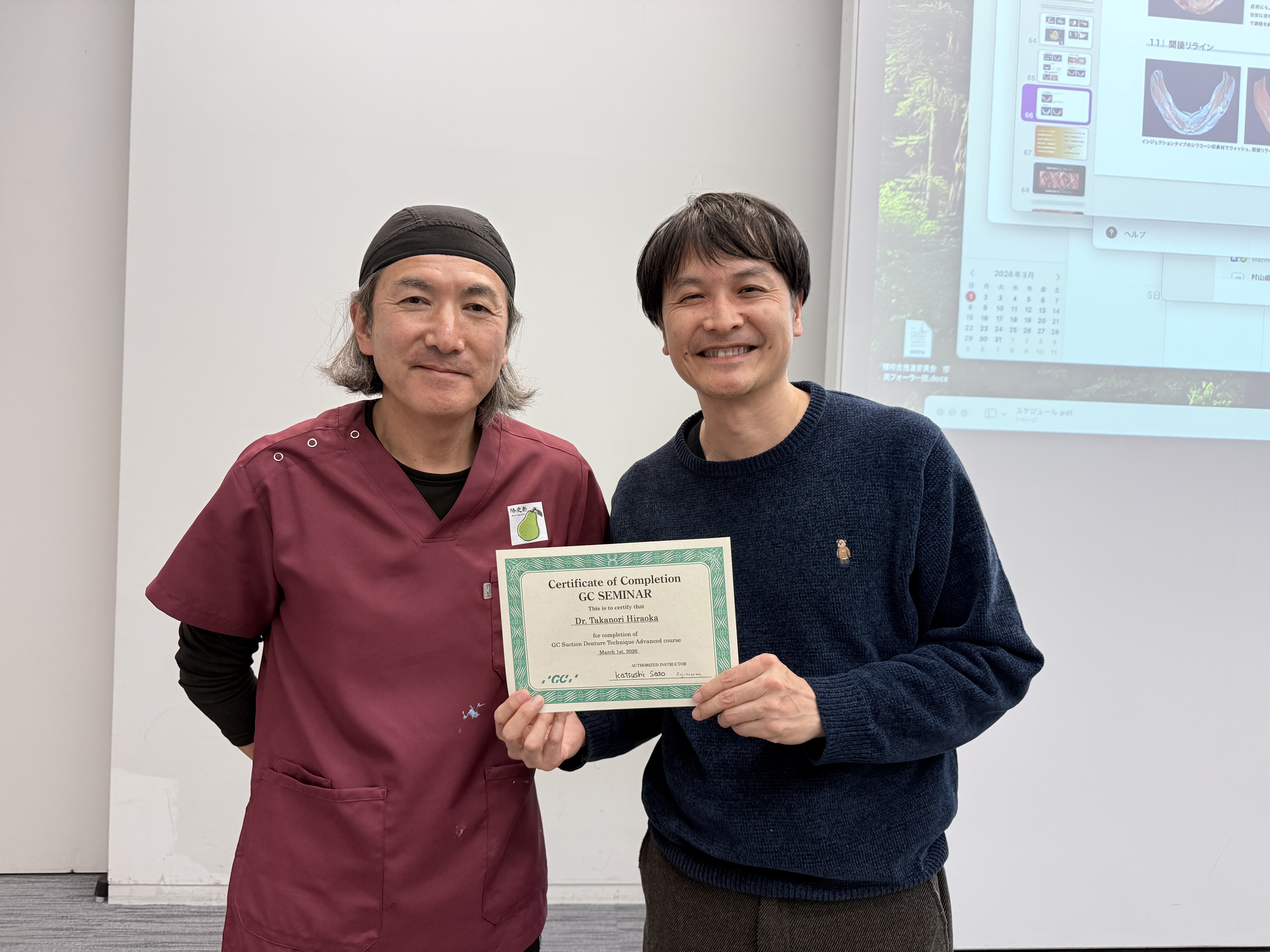 去年より取り組んでいますが、吸着はそこそこよいのですが、自分が思っているものにはなっていませんでした。今回の勉強会でその解消法が学べたので、これから平岡歯科クリニックのこだわりをもっと高めていきたいと思っています。